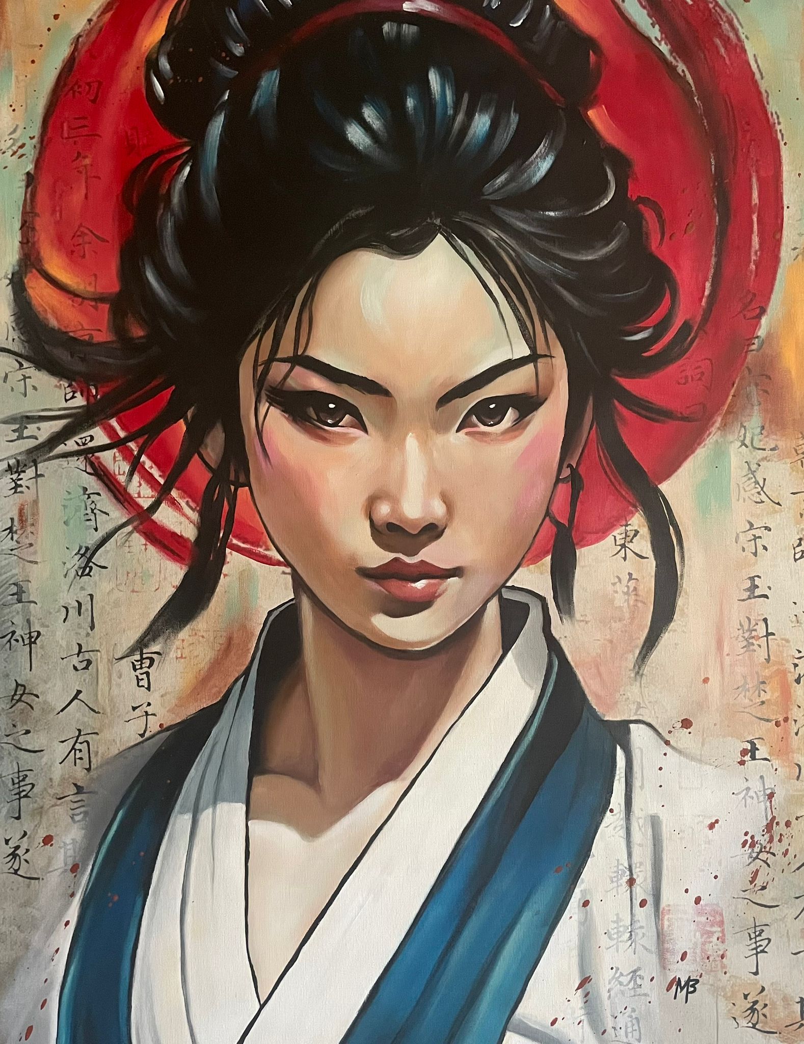 Biografia: Frequenta scuole d’arte e lavora in diversi studi e agenzie pubblicitarie, affinando così il suo gusto artistico attraverso la grafica, l’elaborazione di immagini, l’utilizzo dei colori, della fotografia e dei programmi software. Questi anni le hanno permesso di assimilare e sperimentare stili diversi, che miscela nelle sue creazioni dando vita a temi di ogni tipo. Infatti spazia dall’esteriorità di un mondo superficiale, popolato da etichette sociali, prodotti di consumo e personaggi famosi, ad uno spazio interiore più profondo e intimo, animato da creature sensuali e misteriose, come la collezione delle sue Geishe. Dal 2013 si dedica unicamente alla sua passione per l’arte, rendendola il suo lavoro principale. Realizza nuove opere dal forte impatto pop. Quadri moderni, con una tendenza street, popolati dai personaggi più famosi e conosciuti dei cartoon.
